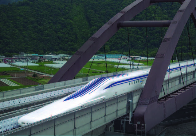 The keys to the SCMAGLEV system’s high speed and acceleration are the magnetic forces acting between powerful superconducting magnets located on board the trains and two sets of coils that are installed in the walls of the guideway.